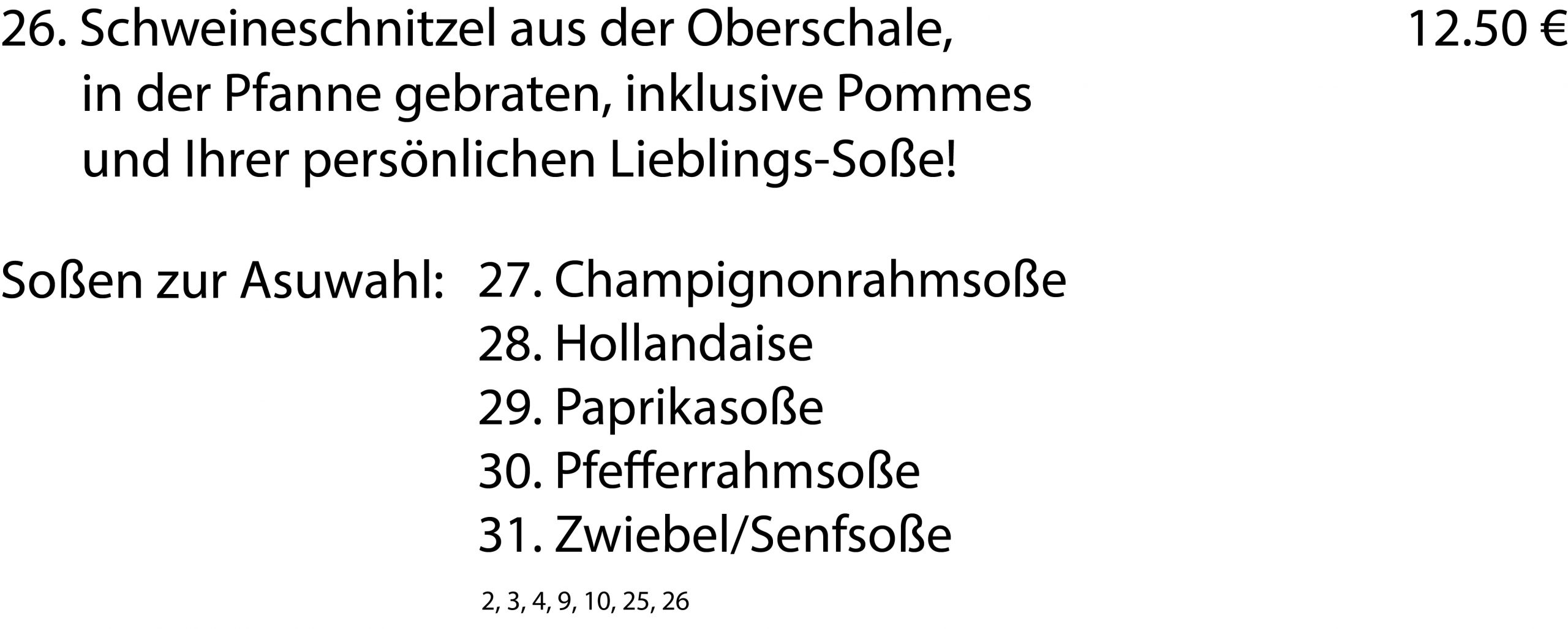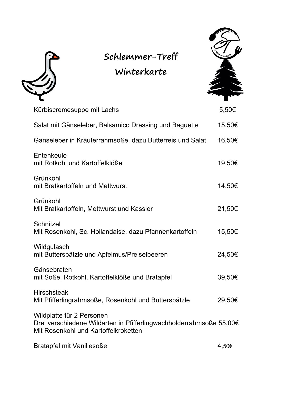 Bitte beachten Sie unseren separaten Aufsteller mit der aktuellen Wochenkarte!